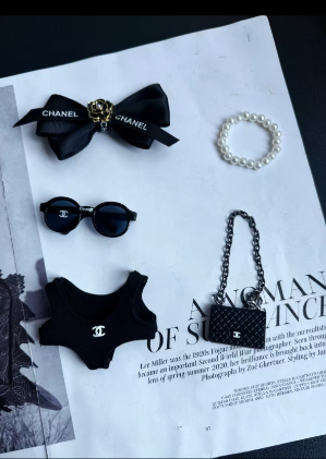 (With purse)Labubu Chan*l black swimsuit doll clothes Cute outfits suitable for popmart toy