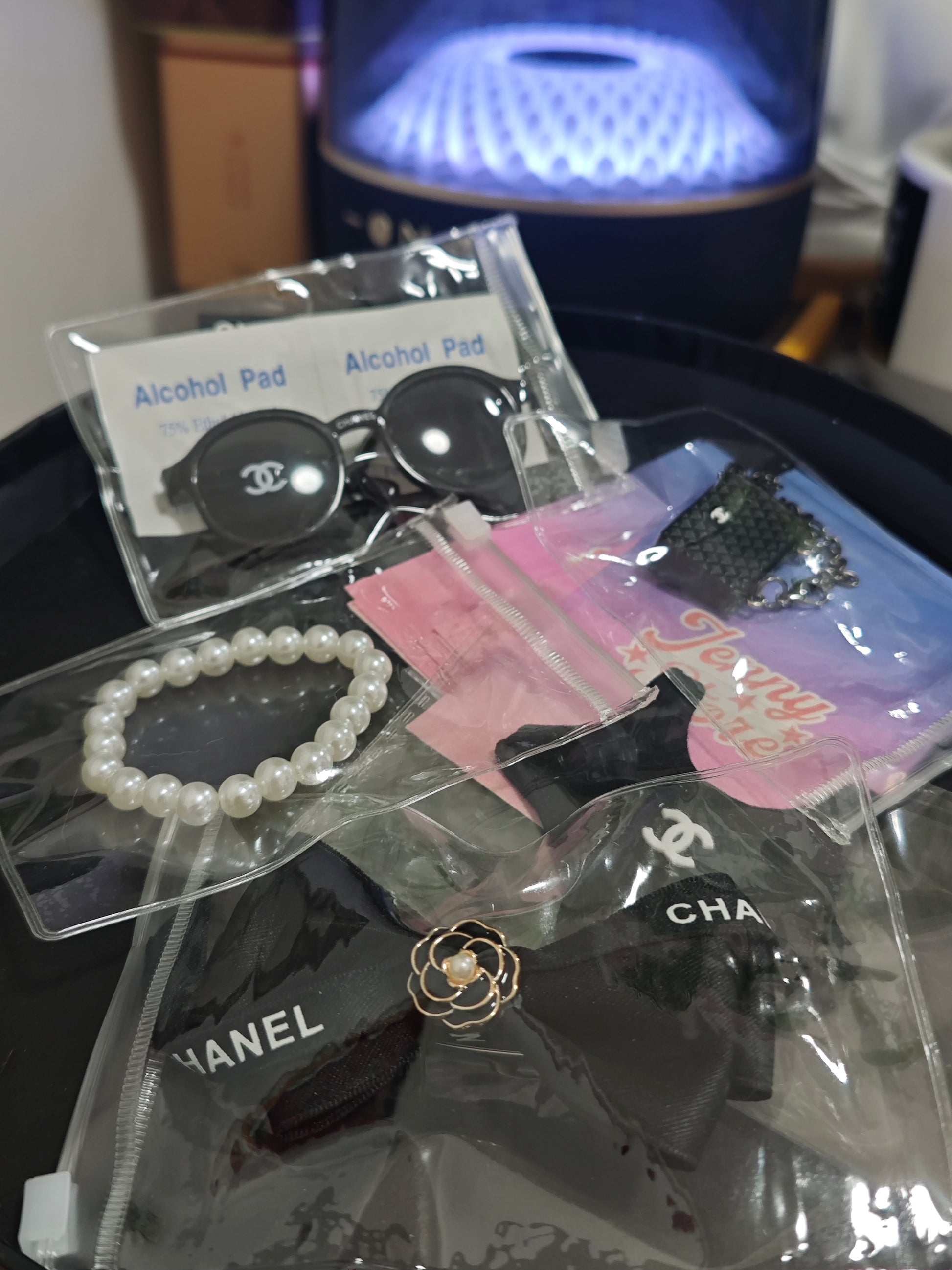 Chan*l bowknot+dress+bag+necklace+sunglasses