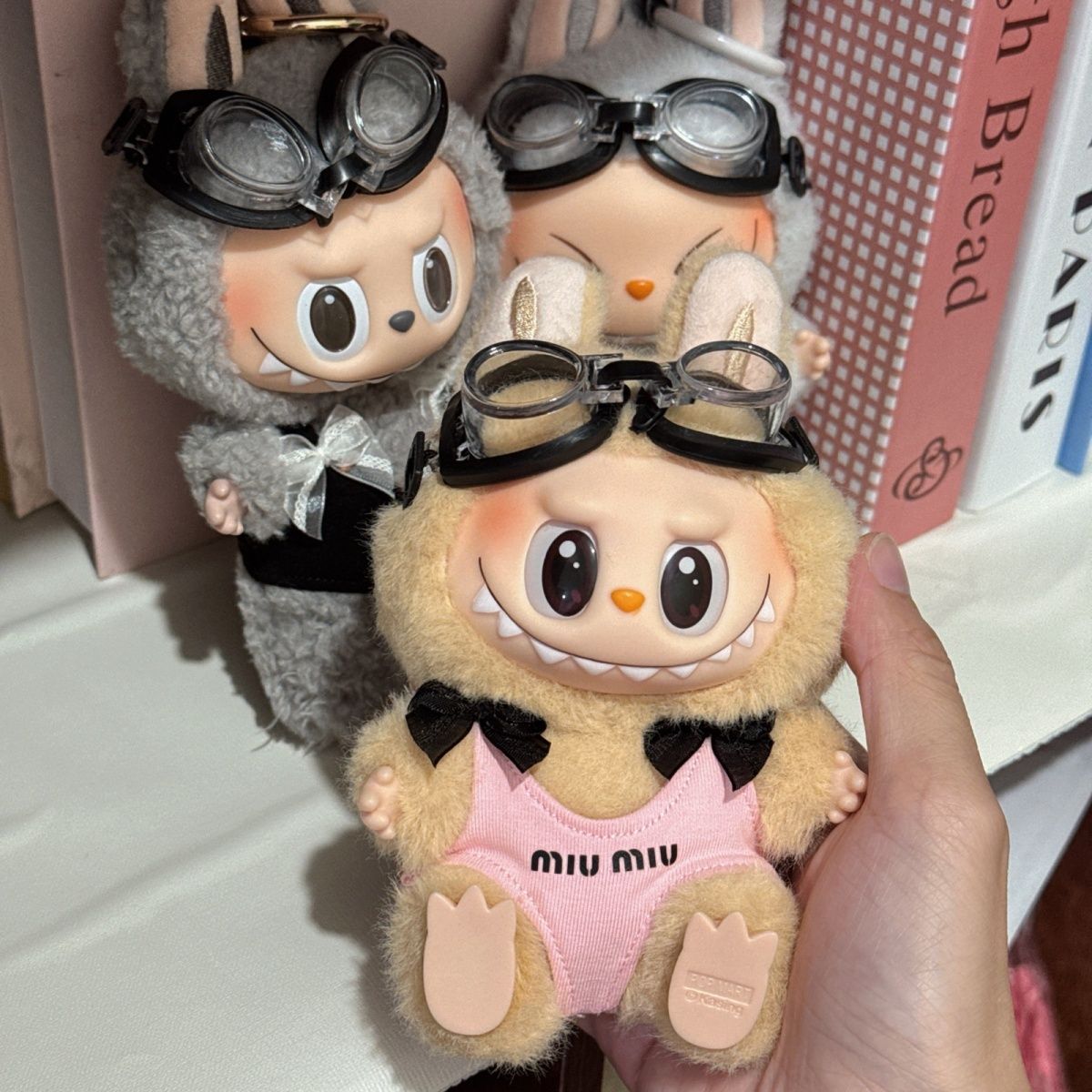 LABUBU Diving mask outfit M*um*u swimsuit with tiny bowknot 3 colors Mokoko beach clothes